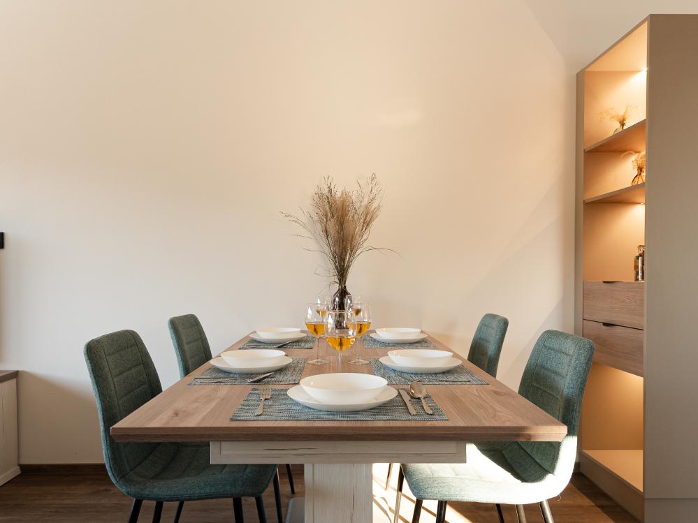 ✔ Jídelní kout je součástí této prostorné místnosti, kde si můžete užívat společné stravování.