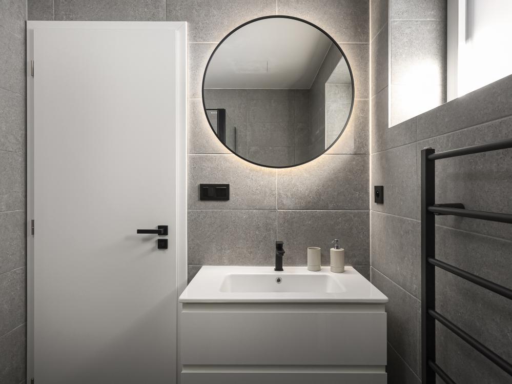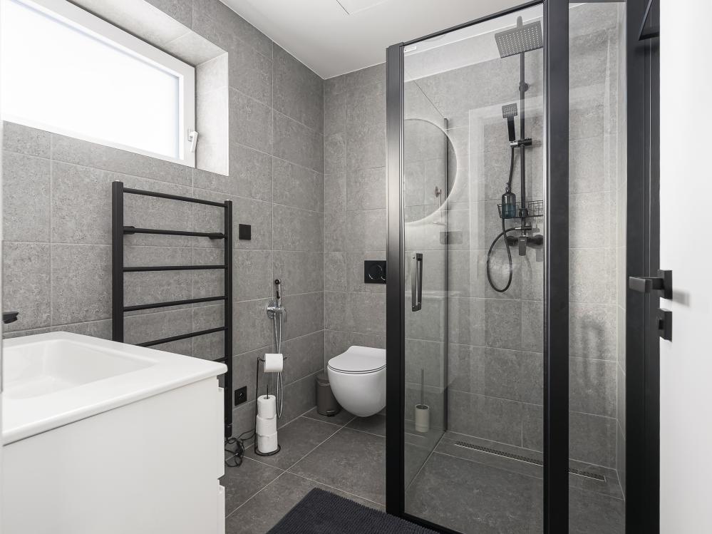 ✔ První koupelna je prakticky umístěna hned u vstupu a je vybavena sprchou, WC a umyvadlem pro pohodlné každodenní použití.