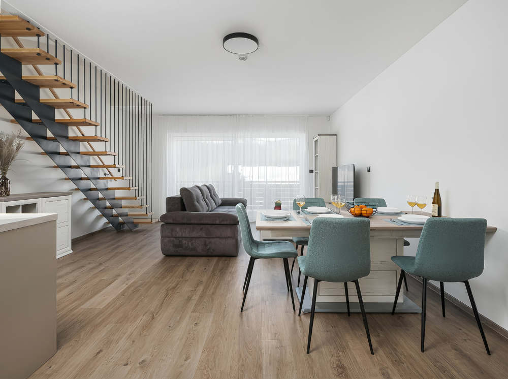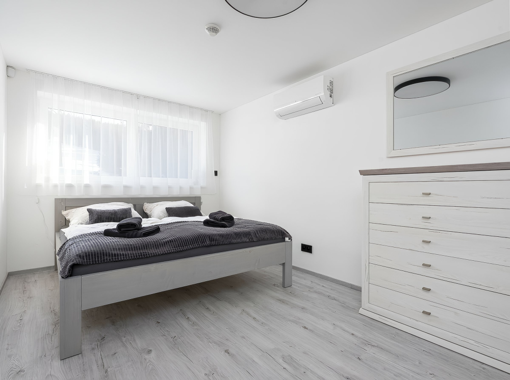 Tento prostorný apartmán je ideální pro pobyt až pro 7 osob. Nabízí skvélé zázemí pro rodiny i skupiny přátel, s množstvím prostoru a moderními vybaveními pro komfortní a bezstarostný pobyt. Skládá se z několika prostorných místností, které vám zajistí soukromí a pohodlí během celého pobytu. Celková plocha apartmánu je 100 m2.
