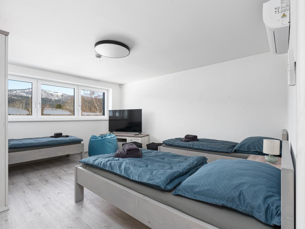 ✔ Dále se zde nachází dětský pokoj s TV, což je skvělé pro děti, které si chtějí užít zábavu po náročném dni. Tento pokoj je vybaven třemi postelemi, takže je ideální pro děti nebo další hosty.